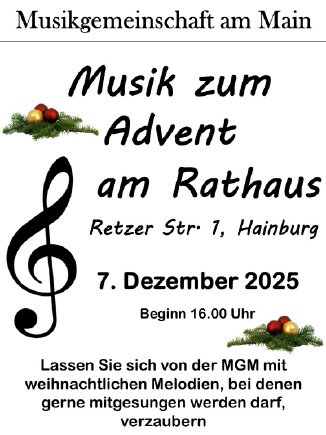 Wie bereits im letzten Jahr möchte die Musikgemeinschaft am Main in der besinnlichen Zeit vor Weihnachten den 2. Advent musikalisch untermalen.